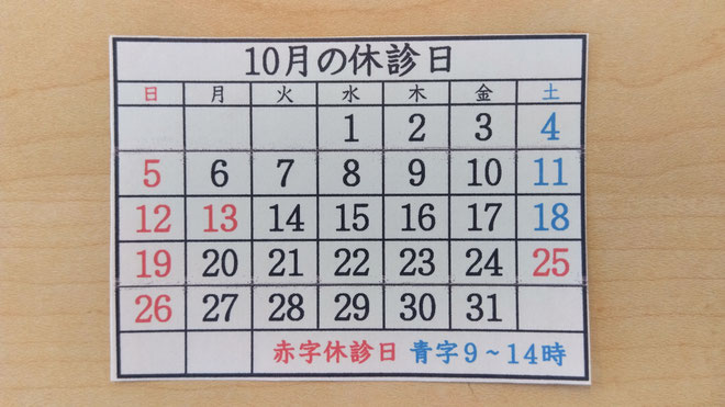 10月は13日(月・祝)は、休診を頂きます。